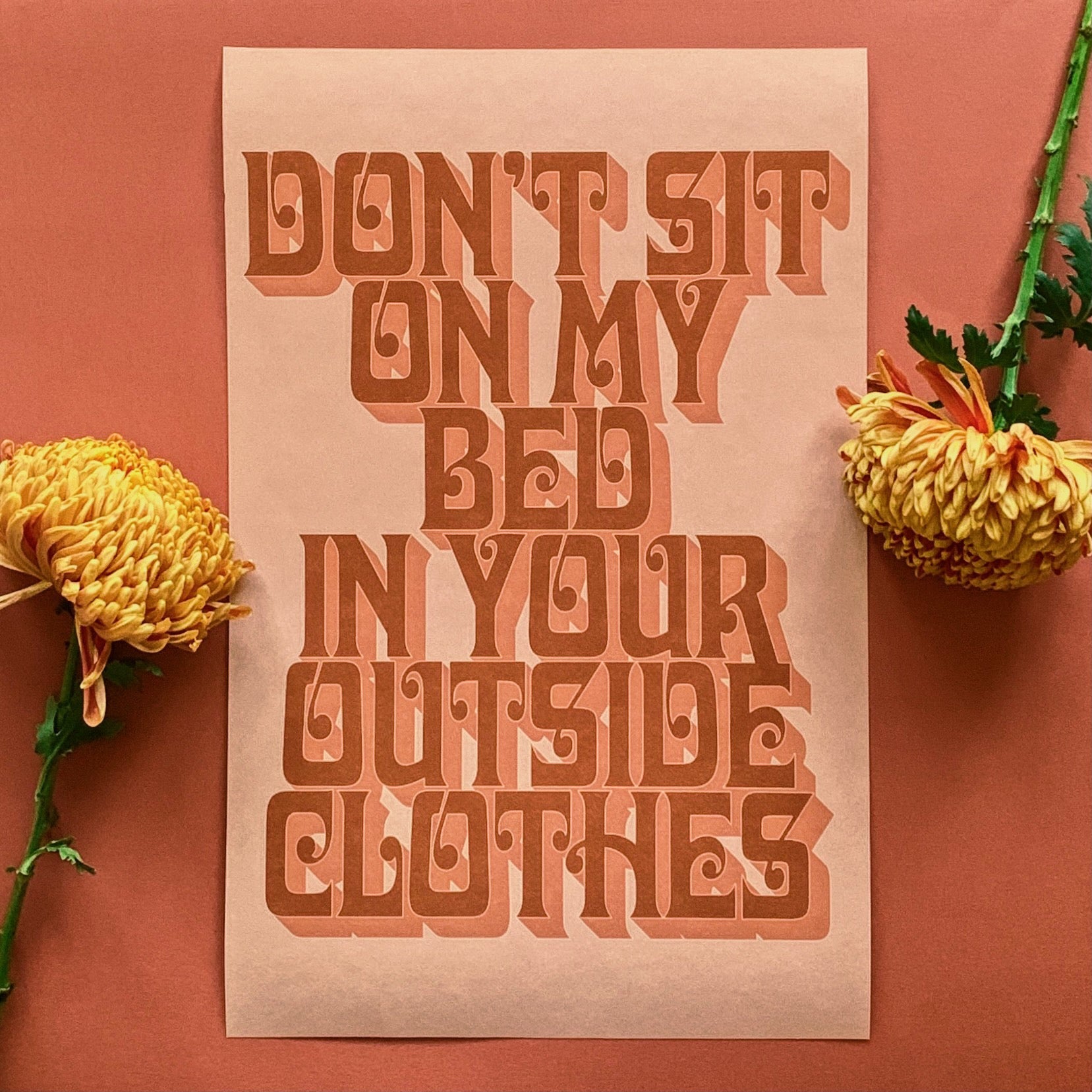 Neutrals: Don’t Sit on My Bed in Your Outside Clothes print