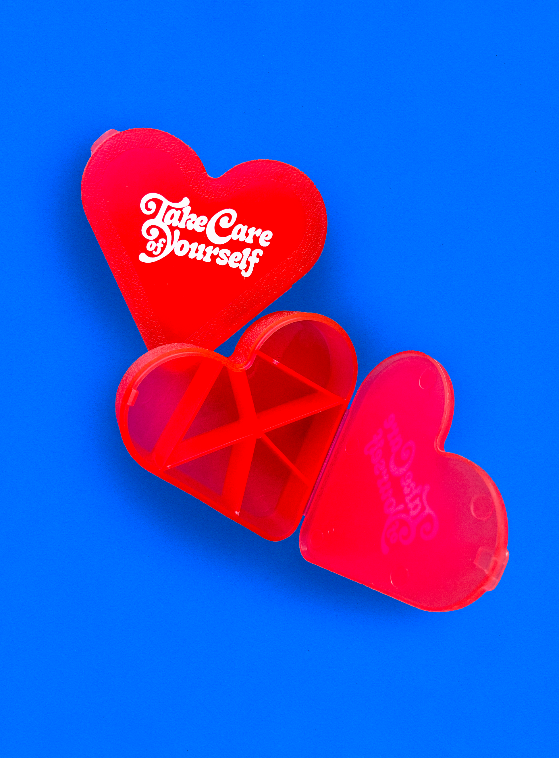 - red heart-shaped front open pill case